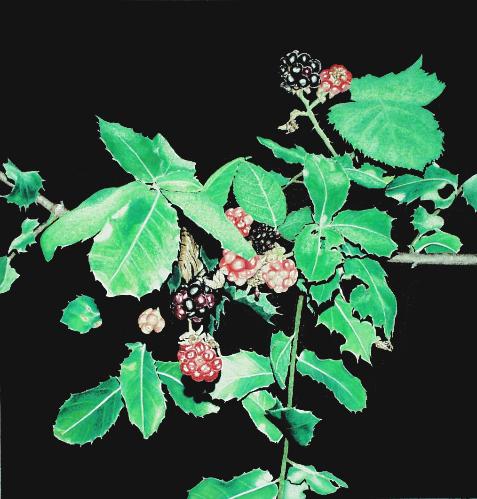 This dusty berry bush was the only colorful plant surviving in the shadows of